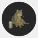Adesivo Redondo Cigarro Engraçado Meme Cigarro Kitten Bebendo B