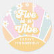 Cinco é um adesivo de 5 de aniversário inspirado no Vibe Retro, com margaridas de estilo 70 e fontes e cores pastéis