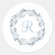 Adesivo Redondo Cinza Azul Monograma Branco Invólucro Floral