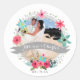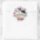 Adesivo Redondo Cinza Azul-Teal Rosa Personalize Sua Foto De Casam