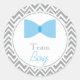 O gênero da medula cinza revela adesivo. O design apresenta uma cinza e um padrão de fêmur branco e um círculo branco no meio com uma gravata de arco azul e o texto "Team Boy".
