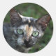 Adesivo Redondo Cinza de Gato Branco Castanho com Olhos Verdes