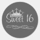 Adesivo Redondo Cinza Escura bonito Doce 16 Vinheta de Aniversário