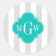 Adesivo Redondo Cinza Lt Stripe Branca Quatrefoil Teal 3 Monograma