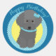 Adesivo Redondo Cinza Poodle Happy Birthday Stickers