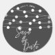 Cinza Silver String Luz Casamento Salve os Adesivos de Data. Personalize com qualquer texto desejado.