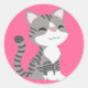 Adesivo Redondo Cinza Sorridente Bonita por Gato