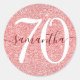 Altere a cor da fonte vermelha e branca escura para corresponder ao seu estilo. Você pode personalizar os números que criam 70 para corresponder à idade dela. Crie seu próprio nome feminino e adesivo de aniversário para seus convites. O brilho vermelho-escuro da burgundia pálida e gráficos brilhantes são criados digitalmente.