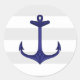 Adesivo Redondo Cinzas de Âncora Azul Marinho Náutico White Strip