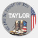 Esta bandeira militar norte-americana de combate que vai embora / cupcake do Partido da Despedida e favorece autocolantes redondos, com uma cinza média, é uma forma personalizada e memorável de enviar e celebrar o seu corajoso Homem-Ar (Força Aérea), Guardião (Força Espacial), Soldado (Exército), Marinho (Marines), Marinheiro (Marinho) ou Guardião Costeiro (Guarda Costeira) indo para Treinamento básico (BMT ou BCT), Campo de inicialização, implantação ou base de direitos no exterior. Perfeito para qualquer ramo de serviço! ** Projetado por uma orgulhosa Mãe da Força Aérea ** Role abaixo para verificar a coleção de correspondência de cheios para sua festa perfeita que vai embora, incluindo convites (disponíveis para download digital instantâneo para aqueles em um rush ou Zazzle impressão & ship + envelopes), sinais de boas-vindas, banners de festas, placas direcionais de grama, livro de convidado para cartazes de arte de parede, decorações de mesa e muito mais! Clique no link azul "by FigLilyCo—militar" no canto superior direito desta tela para visitar minha frente de loja do Zazzle e verificar minha coleção de designs para festas em despedida, treinamento básico, cerimônias de graduação e serviço ativo! *Solicitações personalizadas de design são sempre bem-vindas - clique no botão "mensagem" ou envie um e-mail diretamente (com tempo de resposta rápido!): contact@figandlilyco.com. Desta orgulhosa família militar para você e para o seu - nós enviamos nossas sinceras bençãos, e obrigados ENORMES pelo serviço, coragem e sacrifício de seu futuro membro do Serviço dos Estados Unidos (EUA), que será em breve.