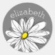 Adesivo Redondo Cinzas e margarida branca com texto personalizado