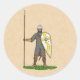 Apelido em hauberk de comprimento do joelho e capacete nasal, lança-carregando de aço e escudo em forma de pipa, um cavaleiro Norman desmontado de cerca de 1066 parece pronto para conquistar a Inglaterra medieval nesta ilustração original de Richard H. Fay.