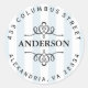 Um padrão de faixas de aviso atraente em azul claro e branco com seu endereço em um layout circular e sobrenome apresentado horizontalmente através do centro. Os emblemas decorativos rodeiam o sobrenome. Insira as informações de endereço no lugar do endereço de exemplo mostrado. Para obter o mesmo efeito de texto, digite um espaço de vazio entre cada caractere e dois espaços pretos entre as palavras. Estes autocolantes estão disponíveis num tamanho pequeno de 1/2" e num tamanho maior de 3". Os pequenos fazem rótulos de endereço de retorno ou selos legais para convites, cartas ou cartões.