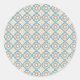 Circular tile design featuring intricate floral patterns in blue, orange, and beige. Below, a sheet displays multiple smaller versions of the design.