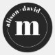 Adesivo Redondo Círculo branco com nomes e casamento preto monogra