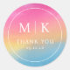 Esta etiqueta de casamento elegante apresenta um design circular com um fundo gradiente suave que transita do rosa para o azul, criando uma estética serena e moderna. A tipografia serifada limpa destaca as iniciais "M | K" no topo, seguida por um "OBRIGADO" sincero, transmitindo calor e apreço. O estilo minimalista foca na simplicidade e sofisticação, tornando-o perfeito para expressar gratidão no seu evento especial. Seu efeito de aquarela suave adiciona um toque de charme artístico, ideal para realçar lembranças ou presentes de casamento.