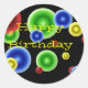 Etiqueta do aniversário dos círculos coloridos do arco-íris