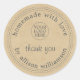 Adesivo de agradecimento rústico e moderno caseiro com o seu logotipo apresenta o texto feito em casa com amor, obrigado e seu nome em tipografia moderna e caligrafia estilosa em um fundo de papel kraft. Basta adicionar o seu logotipo e seu nome ao rótulo. Exclusivamente projetado para você pelo Happy Dolphin Studio. Se precisar de ajuda ou produtos correspondentes, entre em contato conosco em happydolphinstudio@outlook.com.