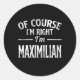 Adesivo Redondo Claro Que Estou Certo, Sou Maximiliano