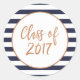 Estes adesivos de graduação em na moda leem "Classe de 2017" em folha de ouro falso rosa. A cor de fundo pode ser personalizada para qualquer cor que você quiser!