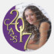 Classe do adesivo de fotografia para graduação em design de roxo e ouro 2017 que você pode personalizar com sua própria foto de formando de cor de cheio e colocar em favores, envelopes e convites.