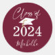 Adesivo Redondo Classe de Script Maroon de Graduação de 2023
