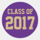 Etiqueta de graduação roxa real com fonte atlética de ouro que lê 2017. Perfeito para a cara na sua casa que está se formando. Você pode facilmente mudar 2017 para qualquer ano de graduação. Pense nisto como um modelo de autocolante. Você também pode mudar a fonte e as cores de fundo para corresponder à sua escola.