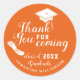 Crie adesivos personalizados de graduação em laranja e branco de 2025 com Obrigado por vir dizendo, e bonés de formando e ilustrações de diploma. O design de modelo facilita o tipo do nome do formando e um ano antes do pedido. A cor de fundo é fácil de mudar a dentro da ferramenta design.