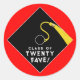 Festa de formatura criativa ou adesivos para presentes, etiquetas de festa e selos de envelopes para a classe '25 formandos com linha engraçada e boné de formatura clássico com fita de ouro em fundo vermelho.