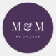 Adesivo Redondo Classic Dark Purple Monogram Typography Wedding