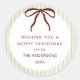 Adesivo Redondo Classic Green Pink Stripes Red Bow Merry Christmas