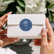 Add a bold and classic detail to your wedding with these navy hydrangea wedding stickers, featuring a white hydrangea and lettering against a deep navy background for a crisp contrast. The circular layout keeps the names and wedding date clearly arranged around the center design, creating a structured and polished look. Ideal for sealing envelopes, labeling favor bags and boxes, or using on welcome bags, these stickers complement formal weddings, traditional venues, and coastal settings.