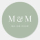 Adesivo Redondo Classic Sage Green Monogram Typography Wedding