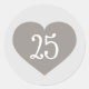 Esse adesivo redondo apresenta um coração de prata sólida com o texto do modelo, "25". O adesivo de coração redondo de prata sólida funciona bem como um complemento comemorativo para garrafas de vinho, doces, envelopes ou sacos de presente para festas de noivado, chás de noiva, jantares de ensaio, casamentos ou celebrações de aniversário. Adesivos de coração de prata são perfeitos para save-the-dates de aniversário de casamento de 25 anos, notas de agradecimento e lembrancinhas. Personalize com os nomes da noiva e do noivo, e a data do casamento ou aniversário.
