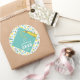 Adesivos de presente de formatura, etiquetas de festa e selos de envelope com gorro de graduação azul turquesa e borlas douradas em fundo de confetes. Para personalizar, edite o texto para adicionar o ano e fazer outras customizações.