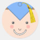 Adesivos de presente de formatura, etiquetas de favor de festa de formatura e selos de envelope com um formando sorridente em um boné azul claro com uma borla dourada. Adicione texto para personalizar para o formando da turma de formatura favorita.