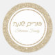 Adesivo Redondo Clássico, Dourado Lítio Hebraico, Feliz Purim