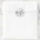 Clássico Elegante Marble Wedding Favor Obrigado Sticker mostrando o título na fonte moderna da cinza em fundo de mármore branco.
