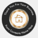 Expresse seus obrigados com esse obrigado clássico projetado profissionalmente que você cola, incluindo um modelo de logotipo emblema de casa dourado que você pode usar em nossos adesivos ou substitua por seu próprio logotipo, imagem ou gráfico comercial. Concebido exclusivamente com texto que ajustado a forma da etiqueta adesiva redonda. Obrigado seus clientes, funcionarios de vendas, funcionarios de escritório ou associados no setor imobiliário, construção doméstica ou construção.