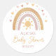 Esses adesivos de chuveco de bebê adoráveis apresentam estilo boho. Um arco-íris pastel fofo é decorado com sol e corações em um fundo branco simples.