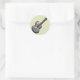 Uma guitarra clássica vestindo um chapéu de Papai Noel. Preto e branco com desenho vermelho (chapéu) vetorado de caneta e tinta, parece um corte de madeira, em t-shirts, cartas e presentes.