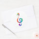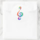 Chave musical desenhada a partir de camadas multicoloridas de cores do arco-íris sobre fundo branco.