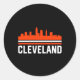 Um design minimalista capturando a linha do horizonte Cleveland, mostrando os seus únicos marcos arquitetônicos e paisagem urbana de forma na moda e contemporânea.
