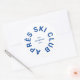 Clube Après Ski, adesivo redondo crest do resort de esqui azul fresco. Personalize com o ano da sua viagem de esqui, nome do resort de esqui e localização. Perfeito para viagem de esqui de destino ou para lembrancinhas de festa temática após esqui. Projetado para combinar com nossa Coleção Après Ski Club.
