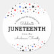 Celebre o feriado do dia 12! Estes adesivos apresentam um design mínimo, mas significativo, com o tema de Junta. No topo está um aglomerado de estrelas representativo dos Estados Unidos. Em vez disso, essas estrelas estão em um esquema de cor vermelha, preta e azul. Uma forma excelente de obrigado para os seus convidados por virem para o vosso barbeque, festa ou evento temático de Junta. Todos os elementos deste item são desbloqueados e personalizáveis. Com isso em mente, divirta-se sendo criativo e fazer seu.