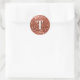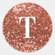 Um monograma moderno, em solteiro, de dupla camada, em branco, com uma sombra em um adesivo redondo clássico. O tamanho, a cor e o estilo da fonte são personalizáveis. O fundo é um falso confete de cobre ou uma cinta de sequências com pontos cintilantes ou um manto indefinido.