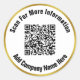Você pode substituir o url do código QR. Há duas linhas de texto de exibição em preto que você pode editar para mostrar uma mensagem personalizada. Estes adesivos elegantes têm texto preto num círculo branco. A borda de ouro falso (e não folha) é uma renderização artística.