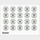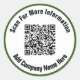 Você pode substituir o URL do site do seu código QR. Há duas linhas de texto de exibição em preto que você pode editar para mostrar uma mensagem personalizada. Estes autocolantes têm texto preto num círculo branco. A fronteira é verde florestal.