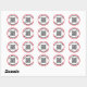 Você pode substituir o URL do site do seu código QR. Há duas linhas de texto de exibição em preto que você pode editar para mostrar uma mensagem personalizada. Estes autocolantes têm texto preto num círculo branco. A fronteira é vermelha brilhante.