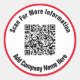Adesivo Redondo Código QR de Verificação de Texto Simples, Vermelh